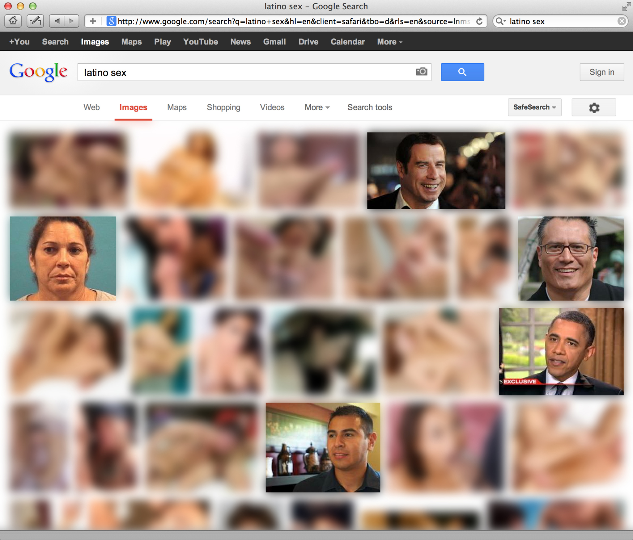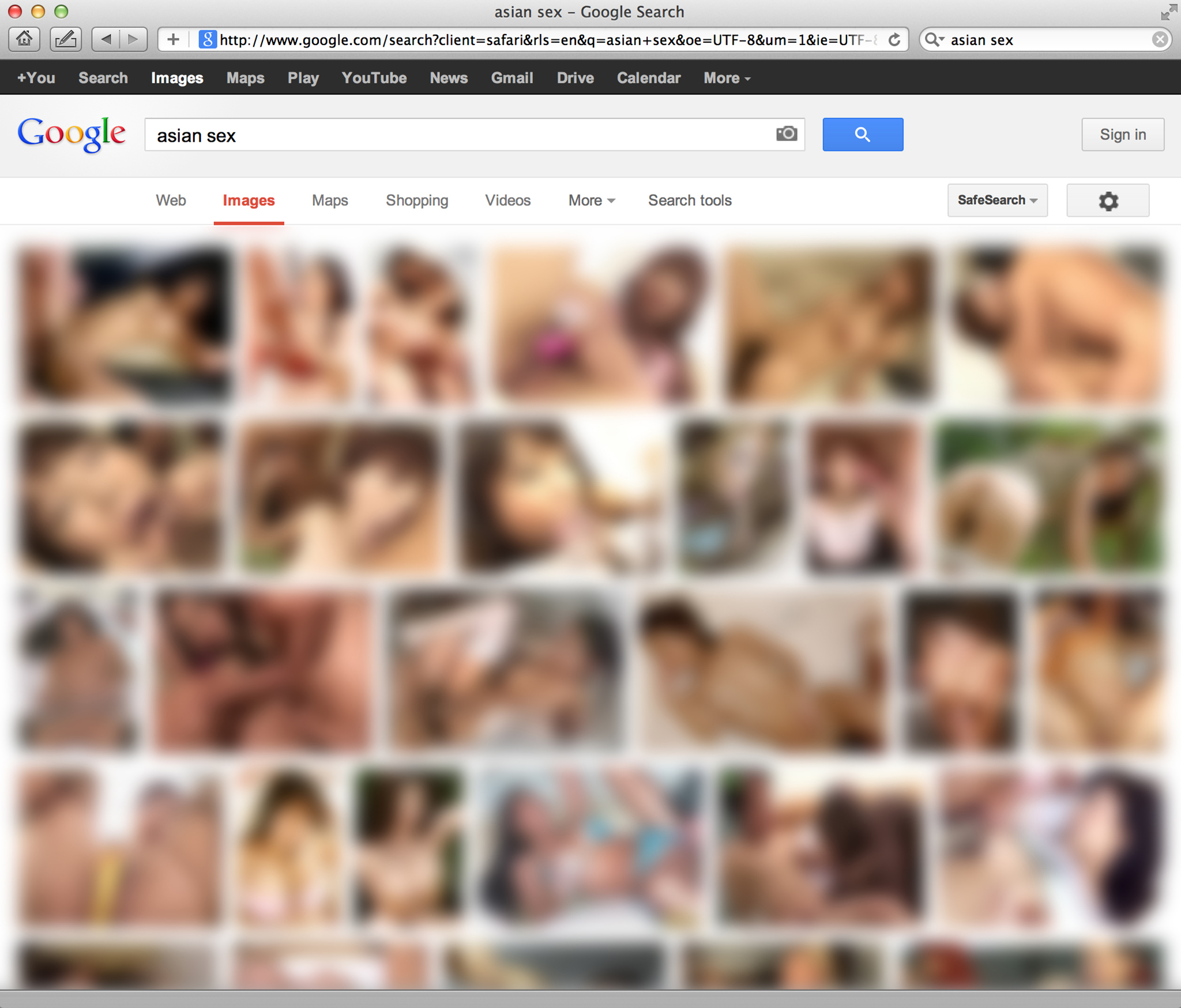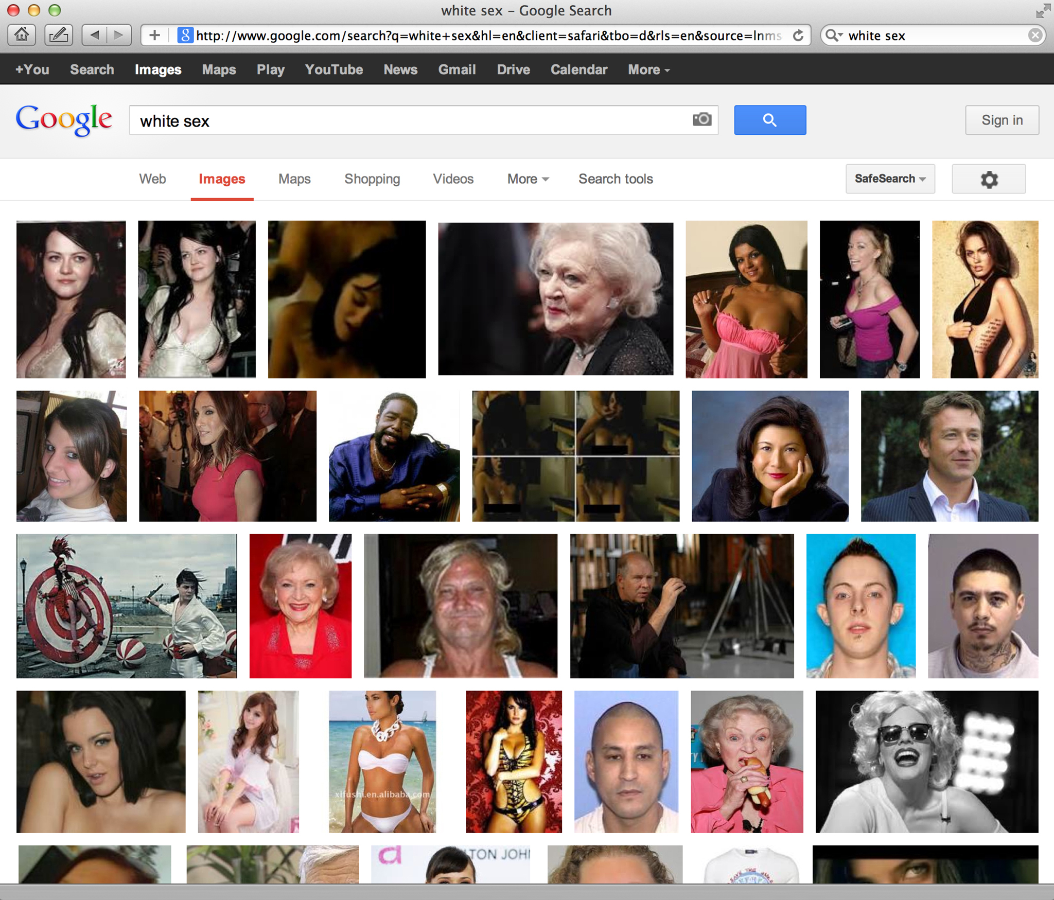 In 2012 Julia Kim Smith googles images for “asian sex,” “black sex,” “latino sex,” and “white sex” and finds the usual porn images except for “white sex,” which generates a lot of white people with their clothes on, including Betty White. Go figure. In the series Google Sex, she blurs all explicit images and the result is oddly prescient of an Eckhaus Latta ad campaign.