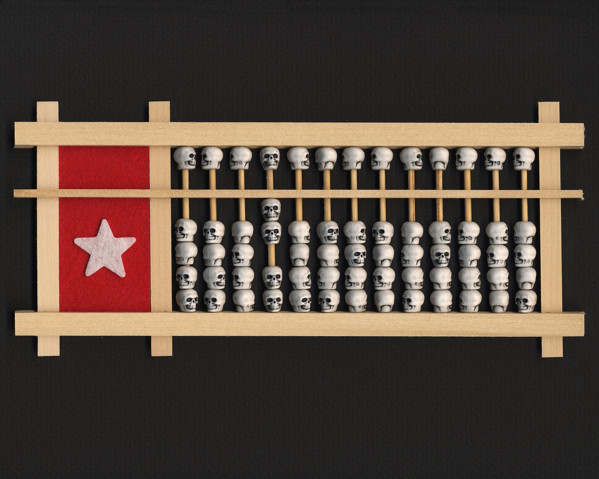 DIY Juche: Abacus For A Political Prison Camp (200,000 prisoners) — balsa wood, pony beads, felt SOLD