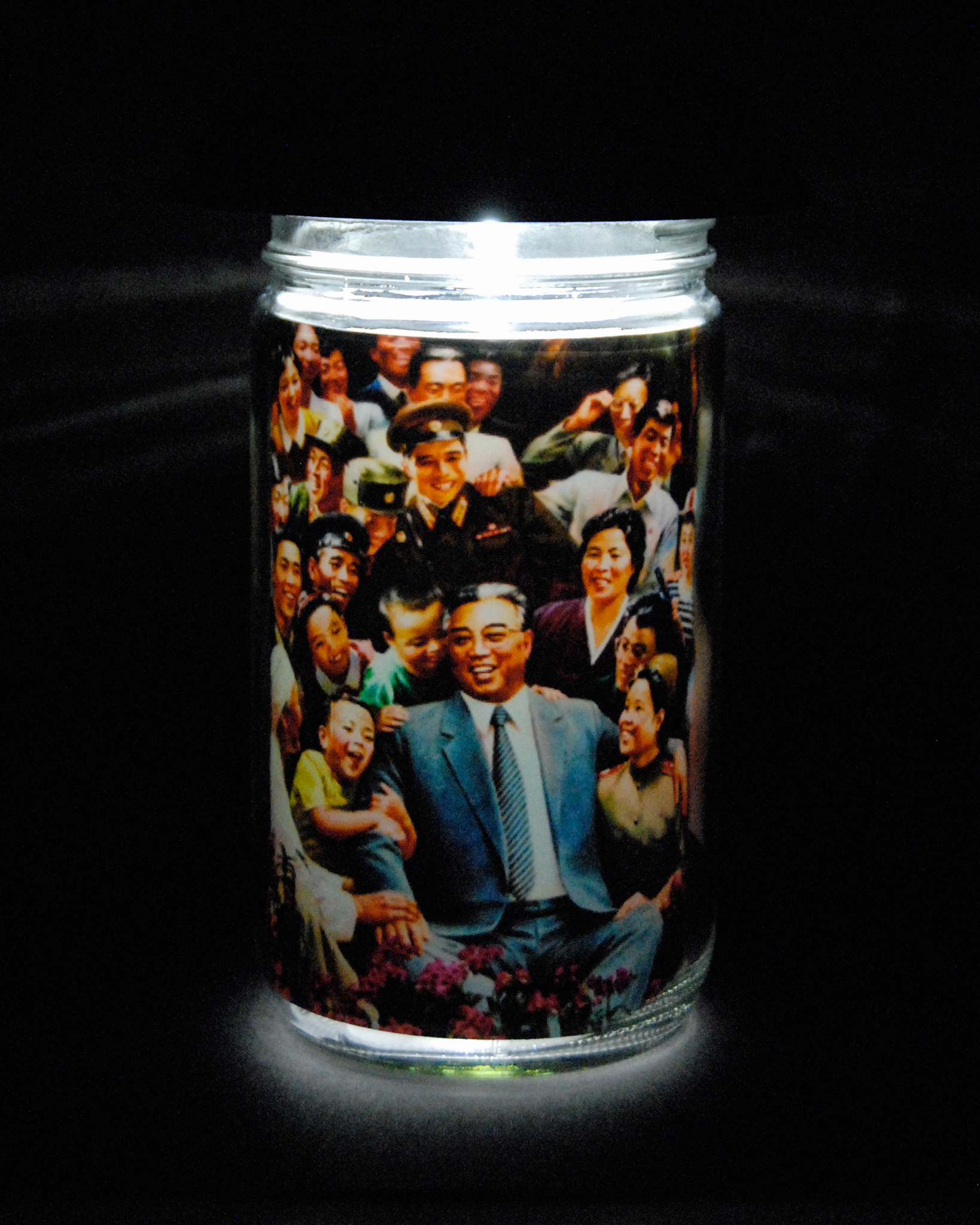 DIY Juche: Solar-Powered Kimchi Jar Nightlight — kimchi jar, solar-powered LED light, archival pigment print on translucent paper